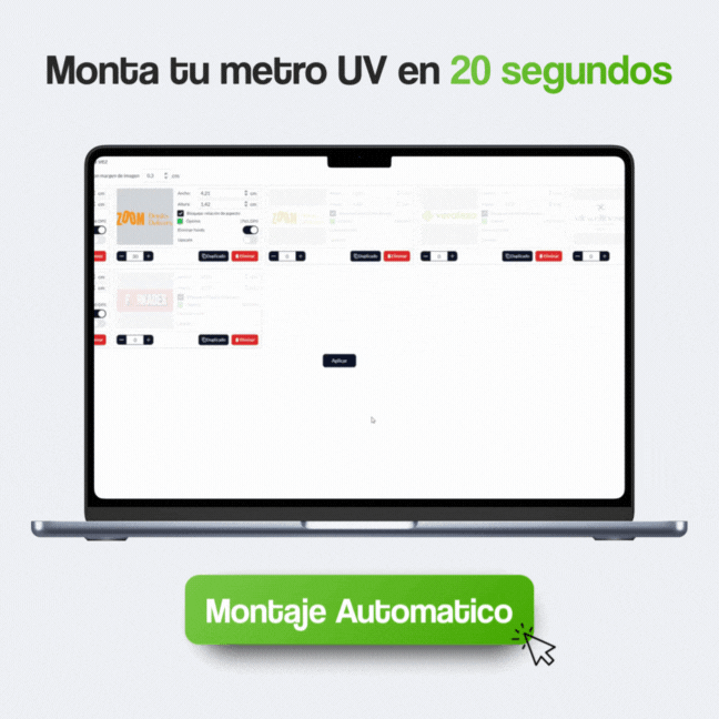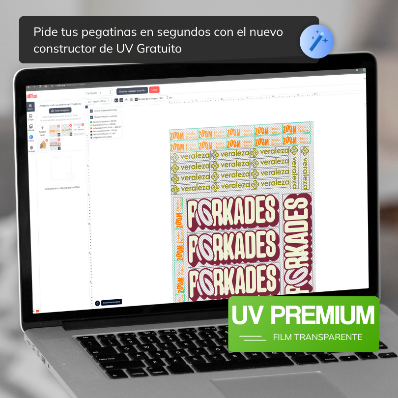 Crea tus propios metros de DTF UV fácil, sin conocimientos en diseño y completamente gratis. Desde 50 centímetros, esta es la forma más fácil, económica y rápida de personalizar cualquier soporte rígido, como gafas, metacrilato o tazas.